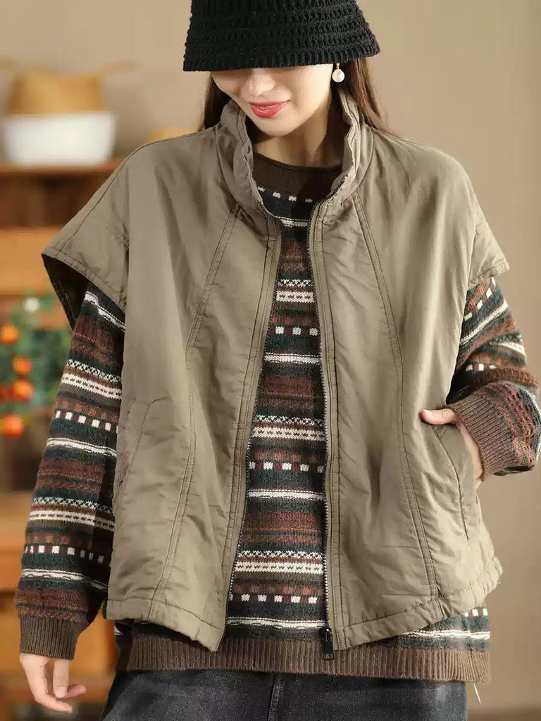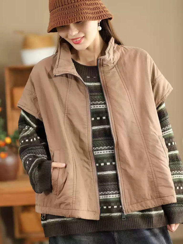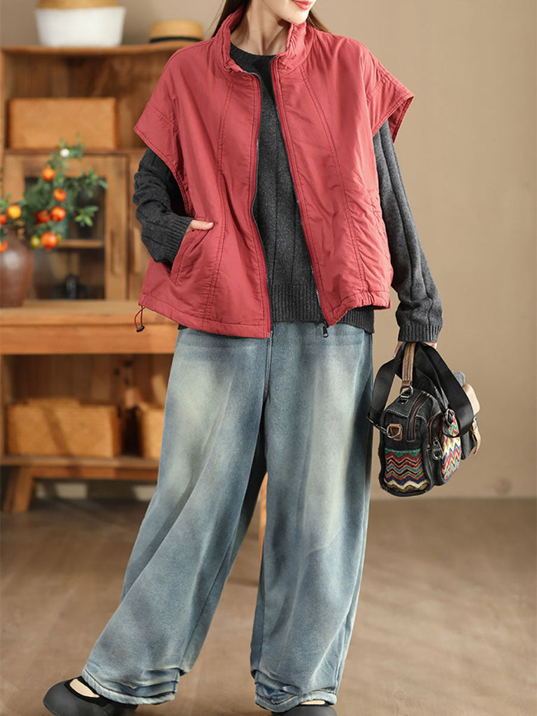 Life is too short to live without the Gilet en coton uni rétro à col montant pour femme WG019. Be happy. Be Content. Be Satisfied.