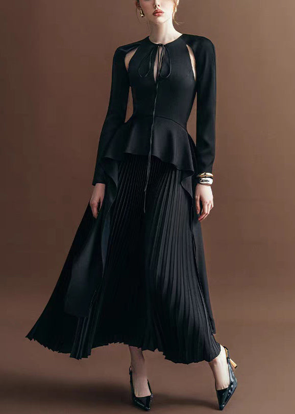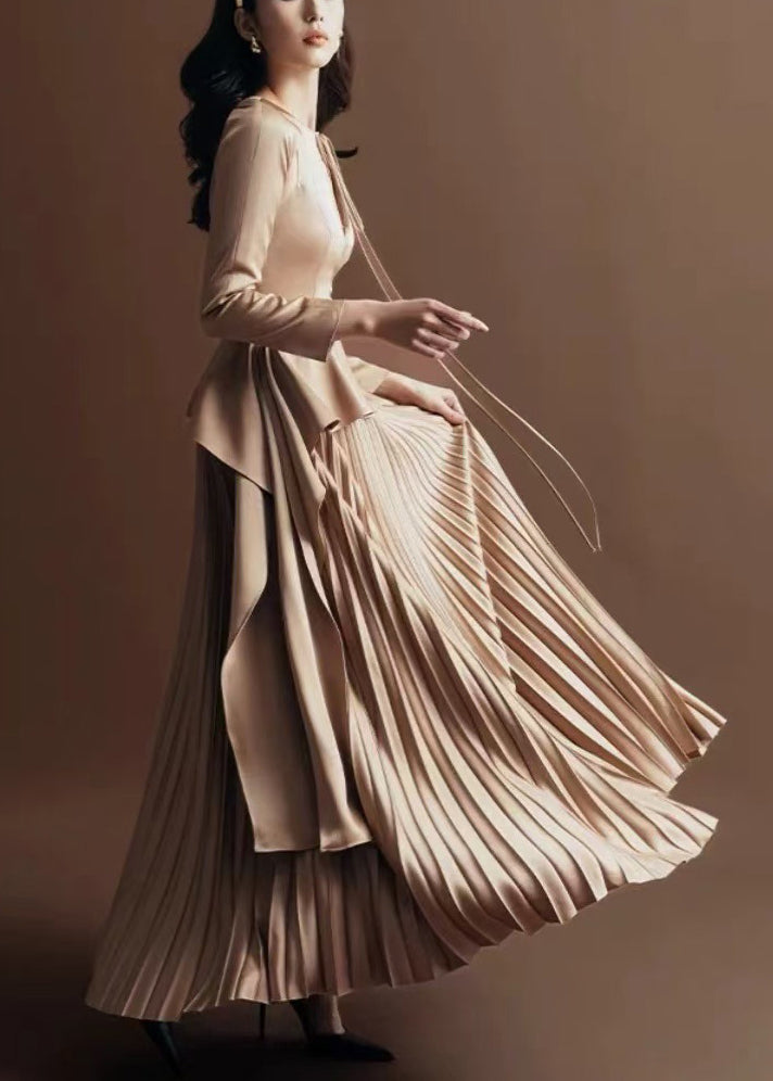 Lace Silk Khaki Novelty Up Dress Wrinkled Long Fall FashionChic