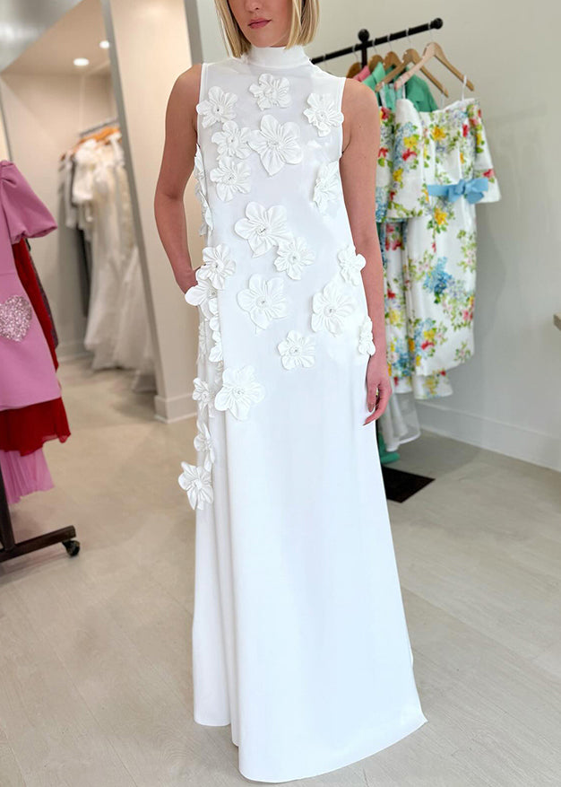 The Robe longue rose sans manches en coton à fleurs, poches et dentelle élégante destined to impress, and priced at only $136.99, for a limited time.