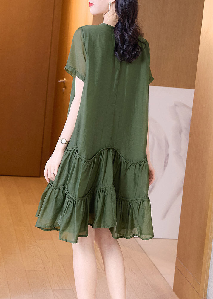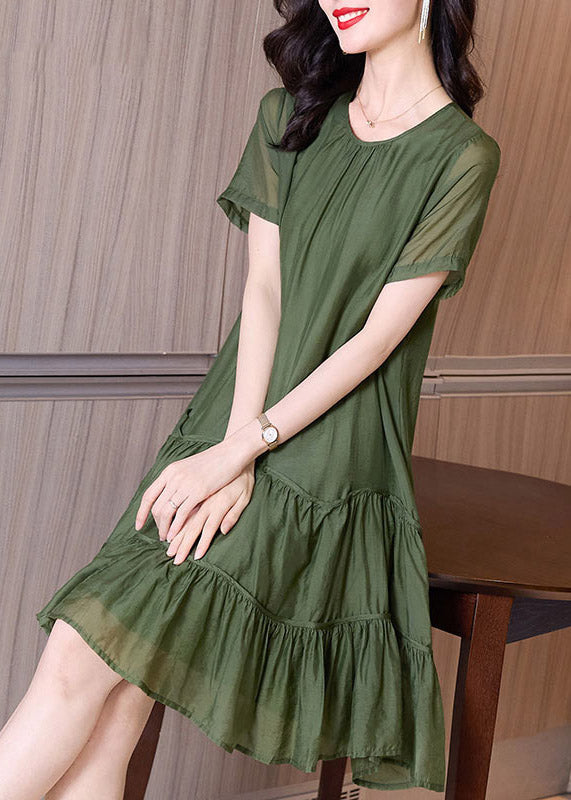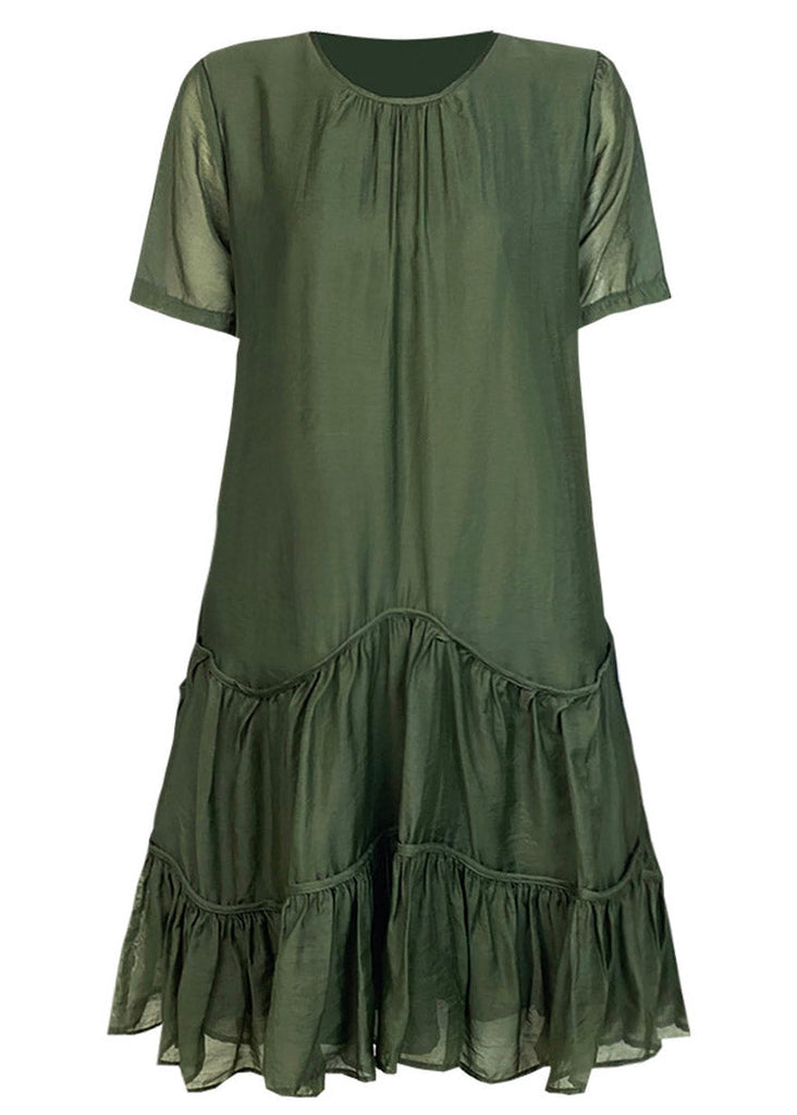 Robes mi-longues d'été amples, patchwork vert uni froissé, couleur vert clair