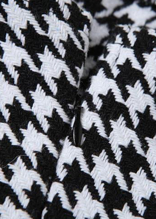 Robe mini sans manches en coton à carreaux noirs français avec fermeture éclair