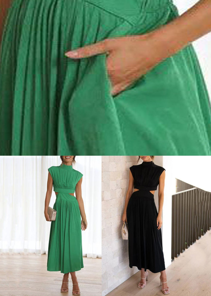 Nouvelle robe longue d'été en coton vert froissé ajouré