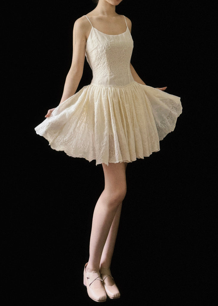 Robe mini beige sans manches en coton froissé brodée neuve