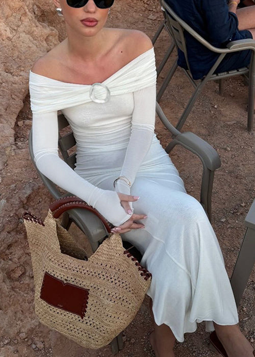 Robe de printemps blanche à col bateau sur le côté, coupe slim en coton, longue et ouverte