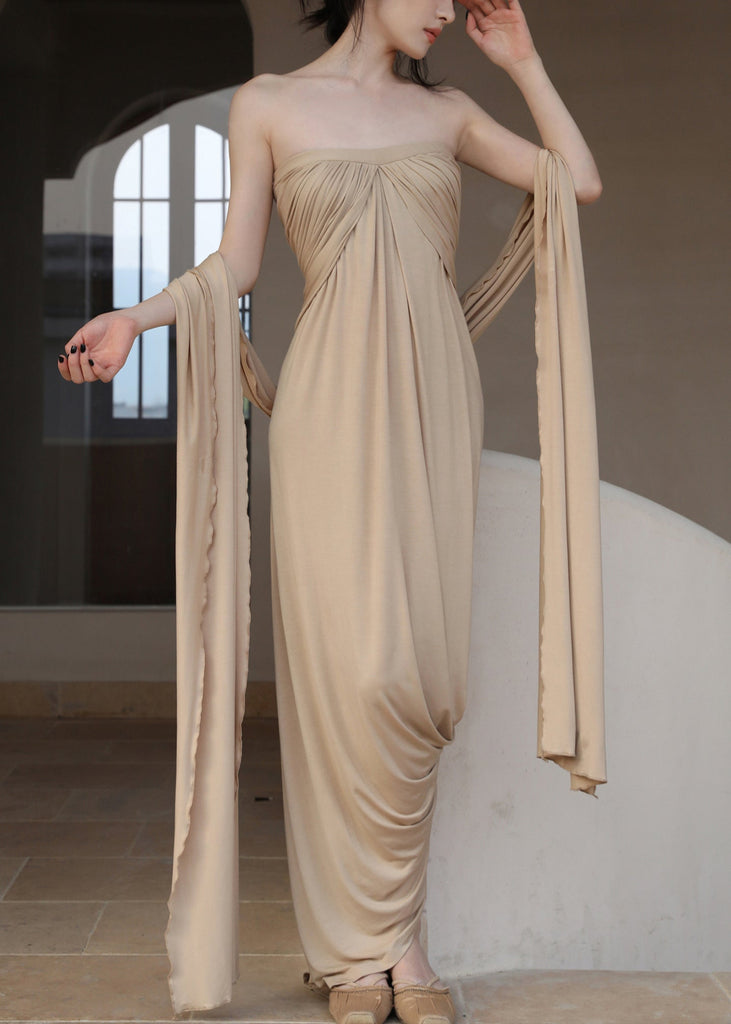 The Off Dresses Wrinkled Cotton French Long Khaki Shoulder FashionChic