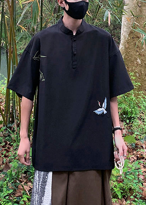 Collar Cotton Loose Stand White Half Button T Embroideried Shirts FashionChic