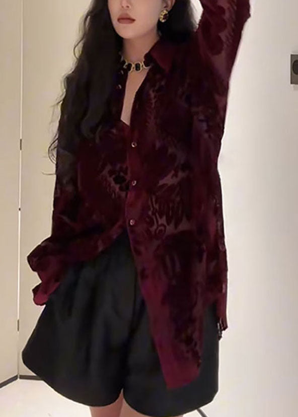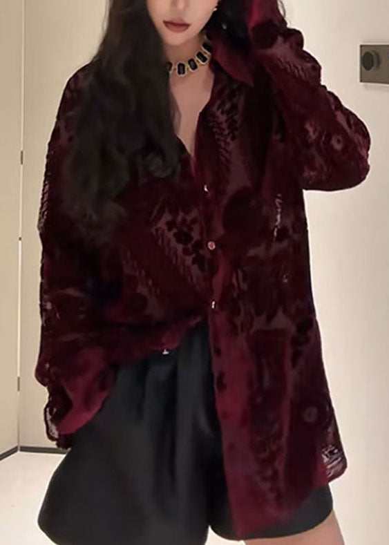 Cette exquise chemise en velours de soie jacquard à col Peter Pan de Fine Mulberry est l'incarnation même de la mode automnale luxueuse.