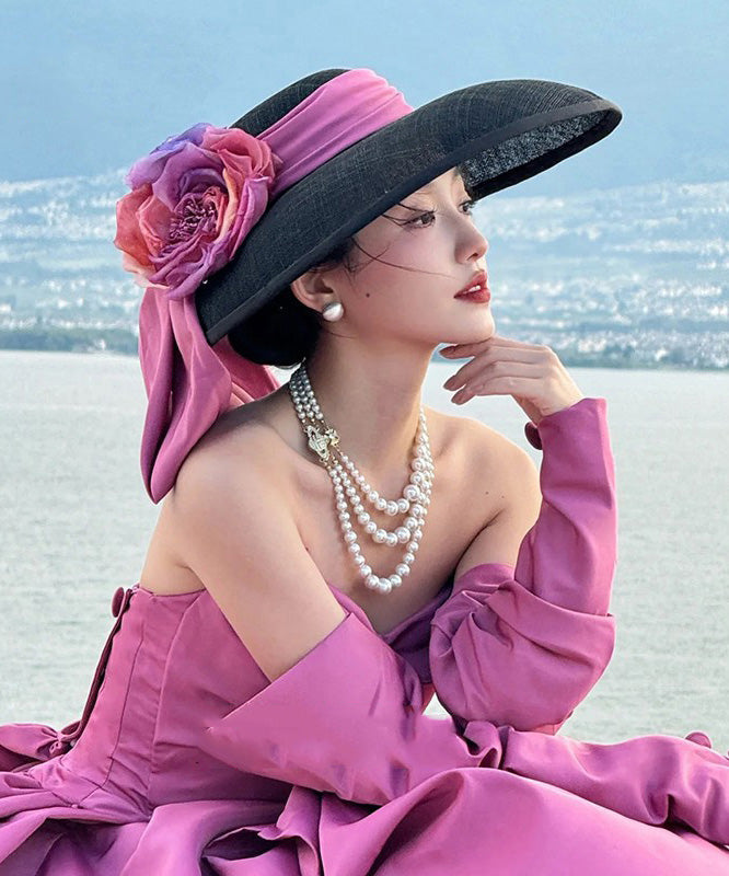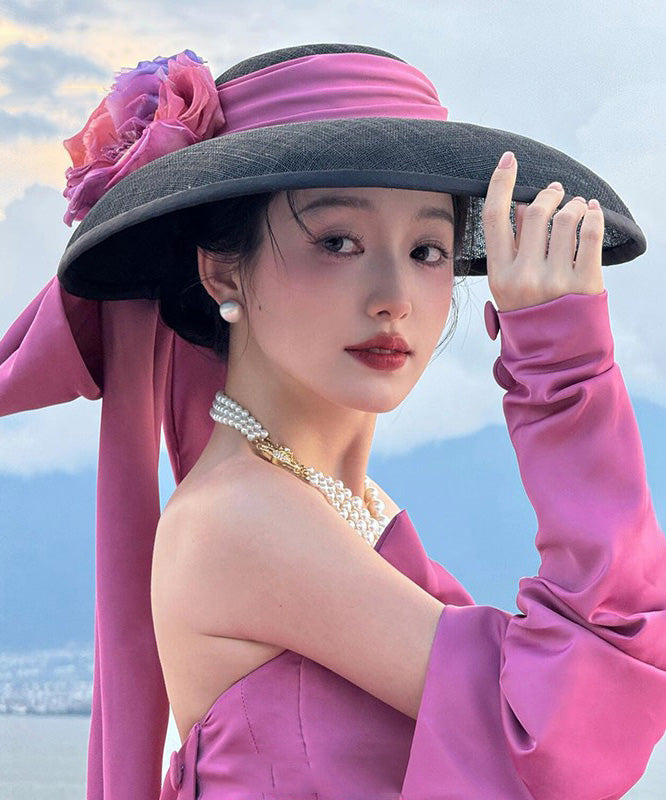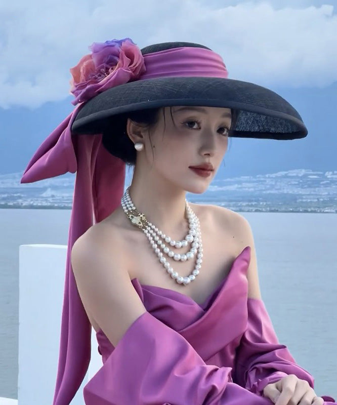 Hat Large Floral Brim Black Bow With French A FashionChic