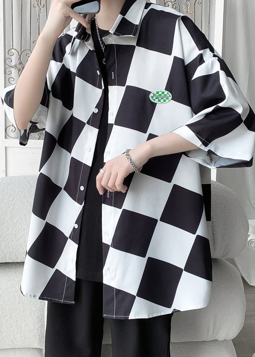 Chemises à manches courtes en soie Peter Silk, col vert chic à carreaux, manches courtes, coupe mi-longue.