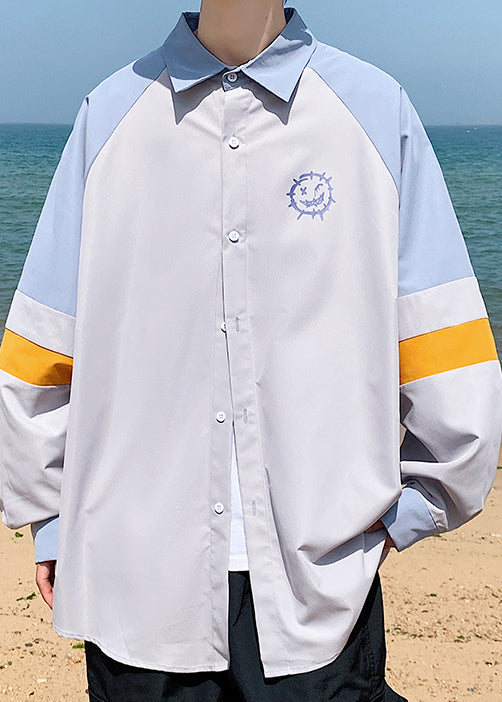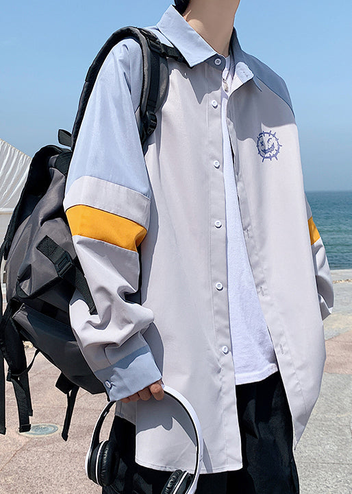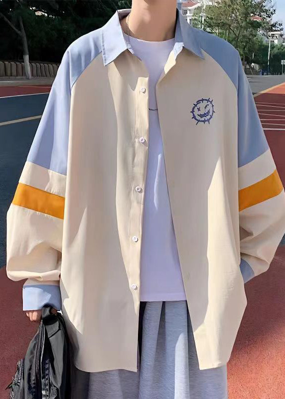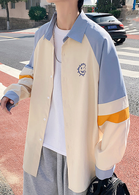 Chemise homme beige à col Peter Pan patchwork en coton, automne RO010