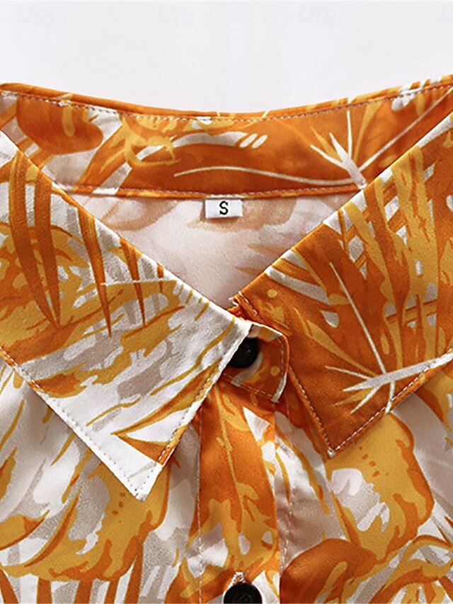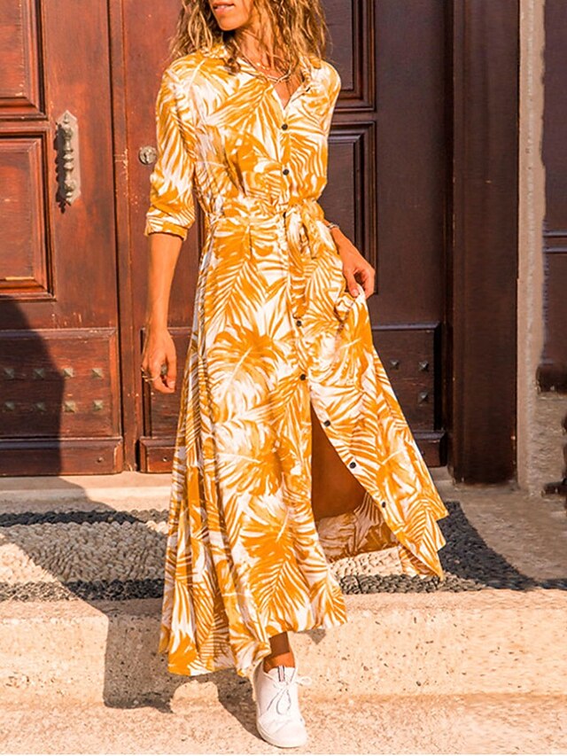 Dresses Type: Casual Dress, Shirt Dress, Swing Dress, A Line Dress, Fabric: Polyester, Gender: Women's, Design: Print, Buttons, Occasion: Daily, Style: Casual, Fit Type: Regular Fit, Dress Length Type: Maxi Dress, Neckline: Shirt Collar, Sleeve Length: 3/4 Length Sleeve, Elasticity: Micro-elastic, Look After Me: Hand wash, Dry clean only, Machine wash, Pattern: Leaf, Season: Spring, Fall, Summer,