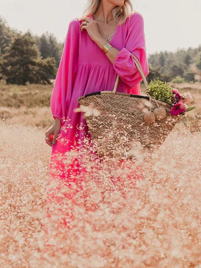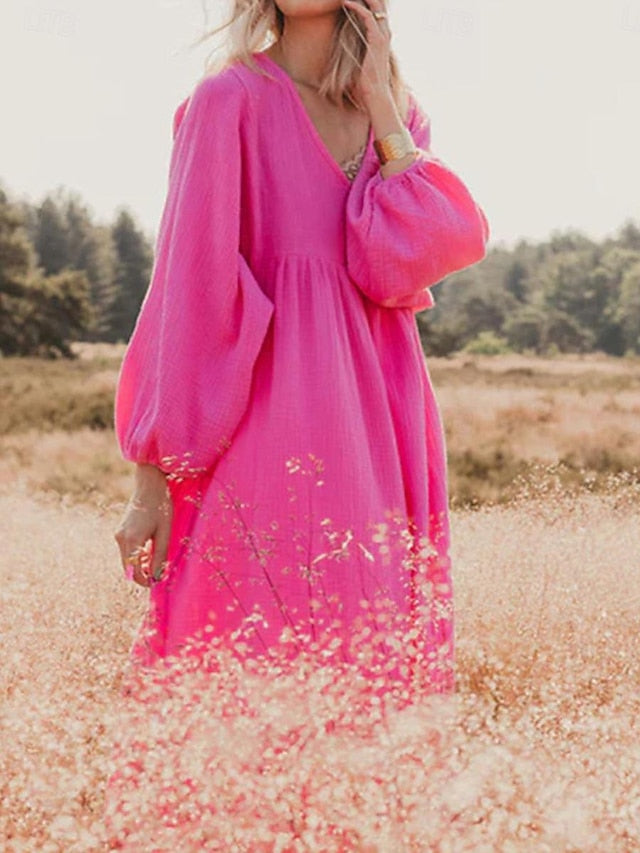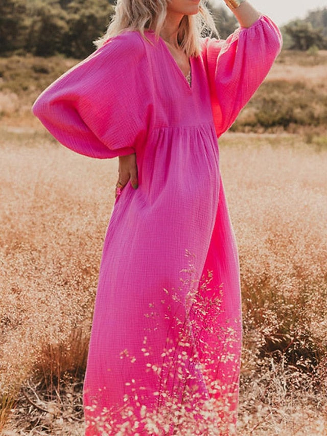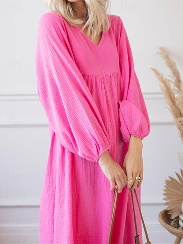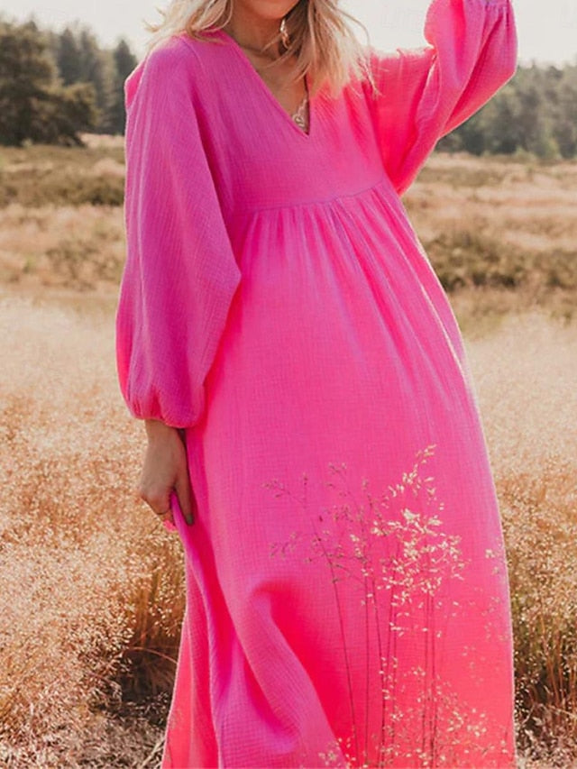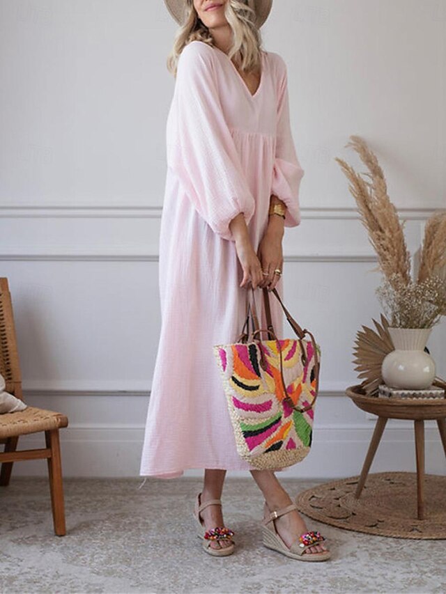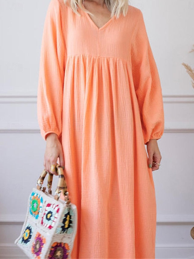 Dresses Type: Faux Cotton Linen, Casual Dress, Fabric: Polyester, Linen texture style, Gender: Women's, Design: Ruched, Occasion: Weekend, Daily, Style: Basic, Modern, Print Type: non-printing, Fit Type: Loose Fit, Dress Length Type: Maxi Dress, Neckline: V Neck, Sleeve Length: Long Sleeve, Elasticity: Inelastic, Look After Me: Machine wash, Pattern: Plain, Season: Spring, Summer,