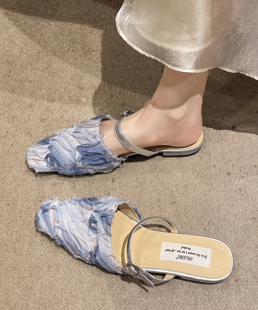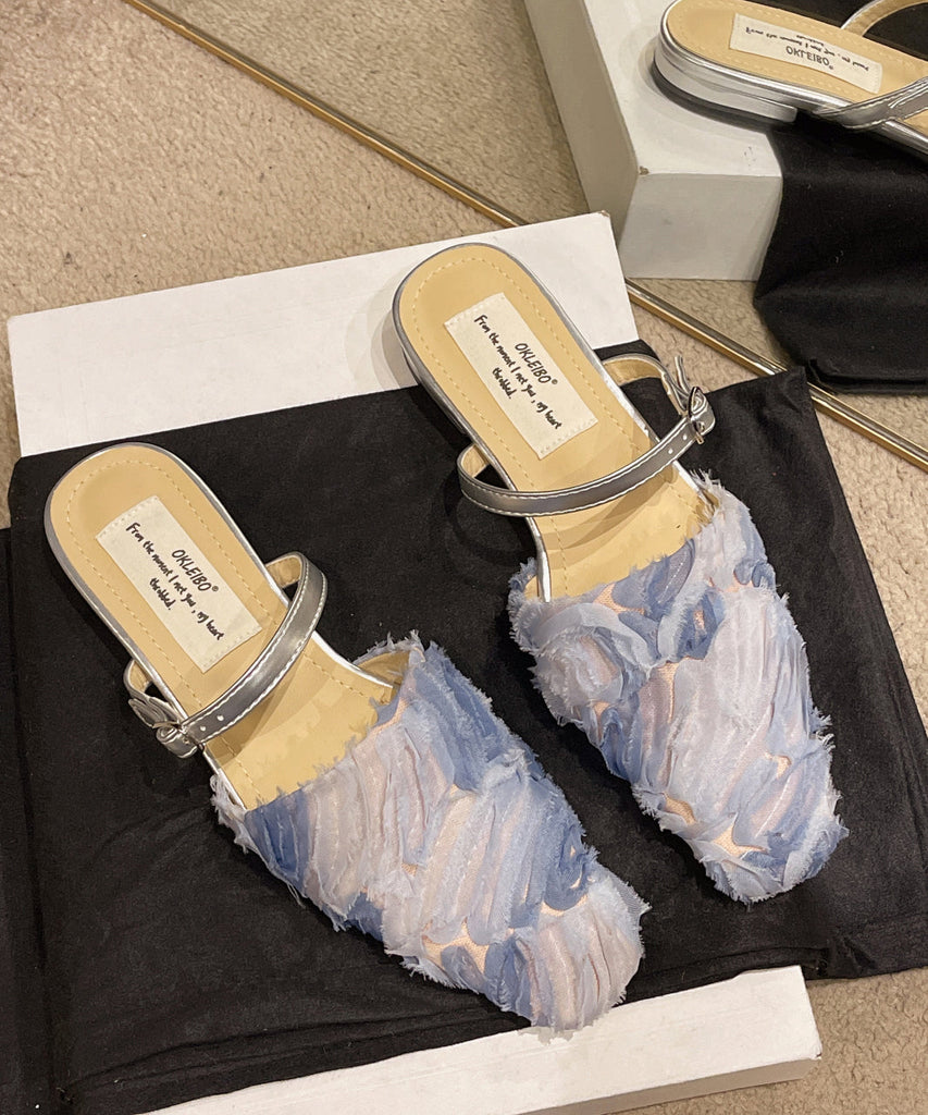 Laissez-vous séduire par l'élégance de nos sandales à bride boucle en coton bleu chiné, confectionnées avec un souci du détail raffiné. Appréciez le confort luxueux du coton doux et le style exclusif apporté par la bride boucle unique. Enfilez ces sandales et sublimez votre style.