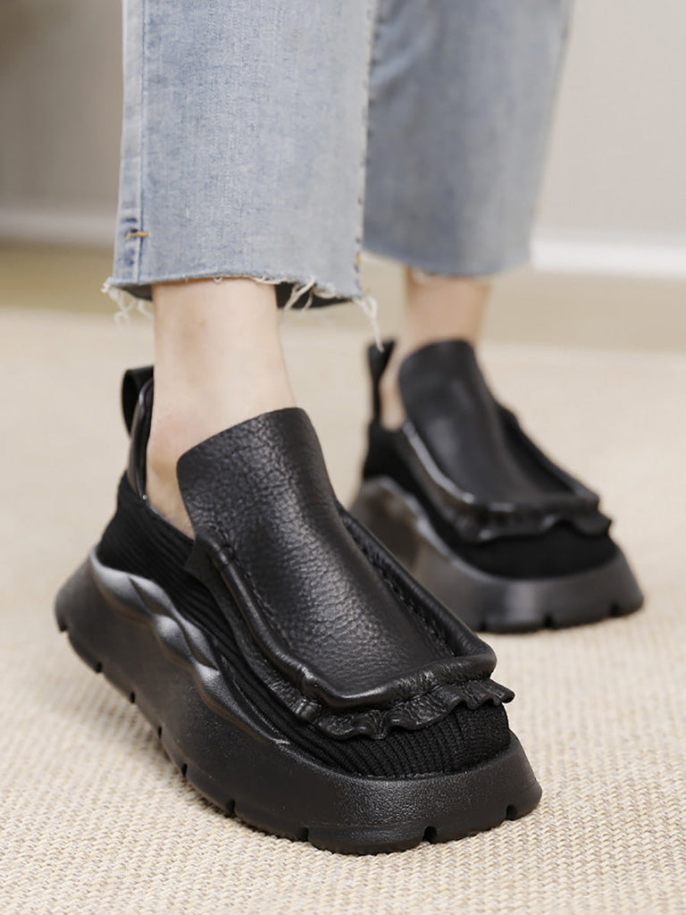 Chaussures à plateforme rétro pour femmes en cuir véritable AH1077
