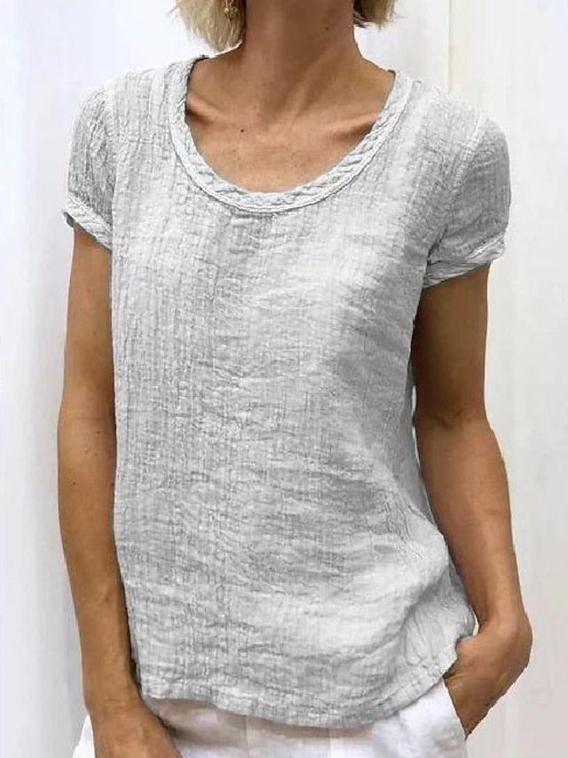 Women's Shirt Cotton Linen Shirts Blouse Plain Basic Short FashionChic