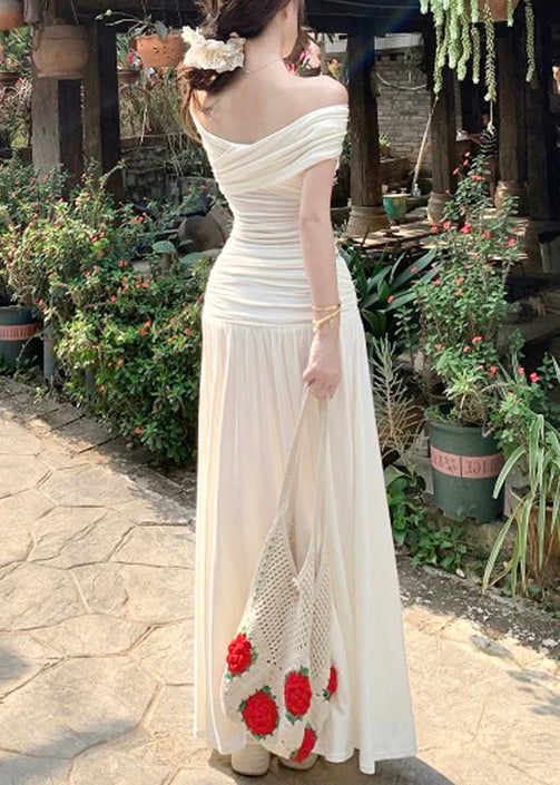 Ensemble deux pièces en coton beige froissé, haut et jupe, pour l'été.