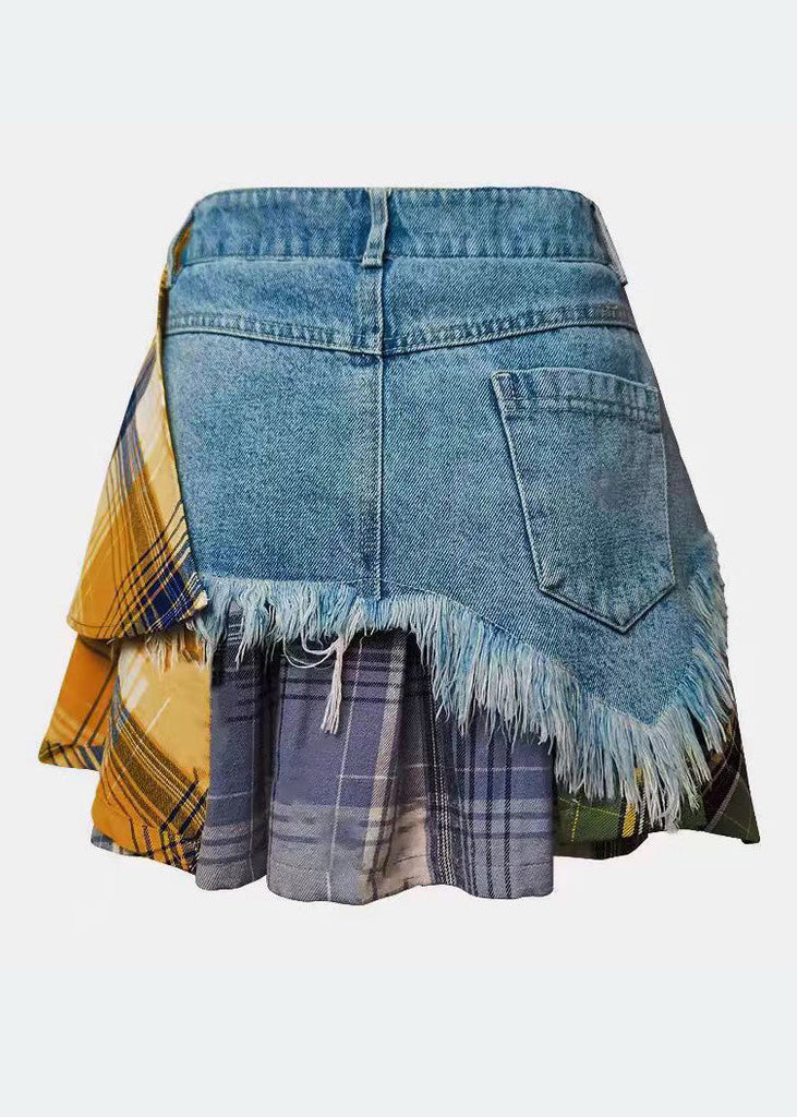 Imagine if you could be satisfied and content with your purchase. That can very much be your reality with the Jupes en denim bleu patchwork d'été, coupe ajustée et asymétrique.