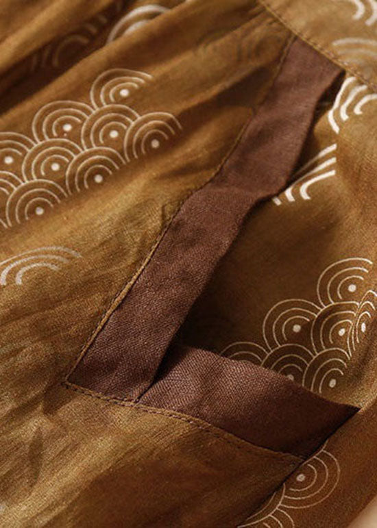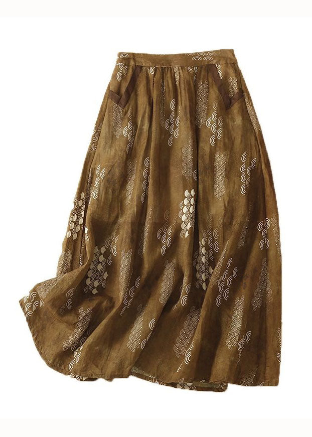 Jupe d'été froissée en lin patchwork imprimé poches à café