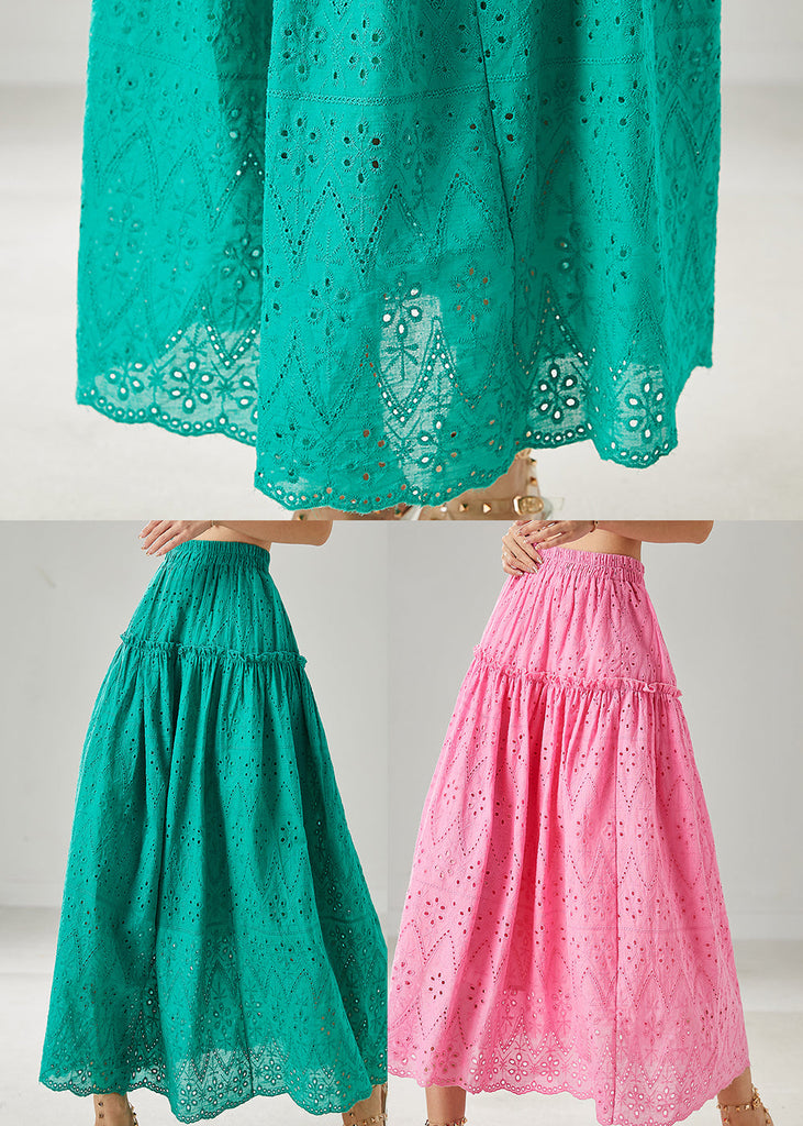 Jupe d'été en coton ajouré à volants rose fin AZ1046
