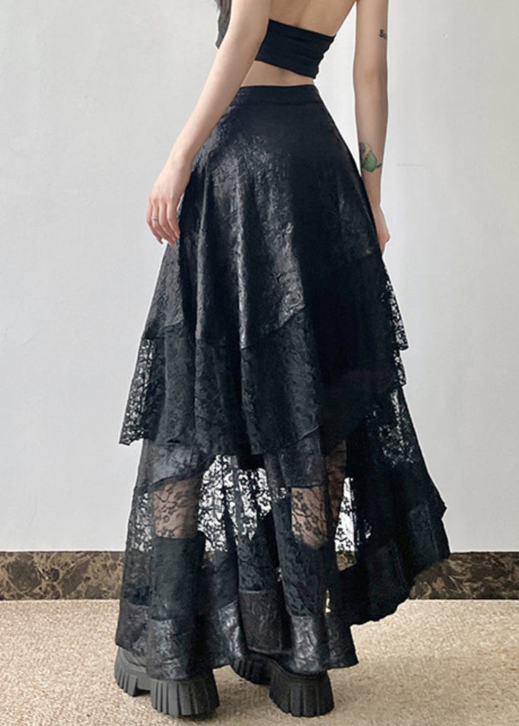 Jupe asymétrique française noire en dentelle patchwork QP029