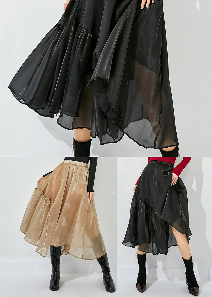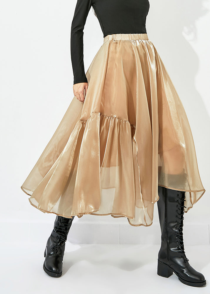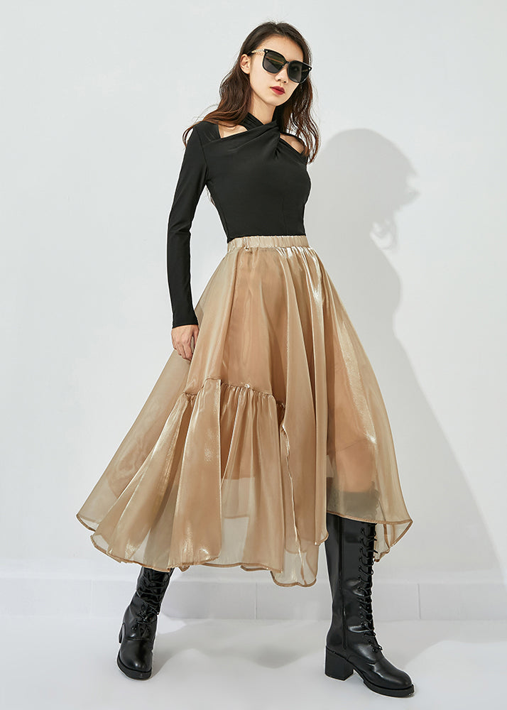 Jupes en tulle patchwork kaki froissées à ourlet extra large, été LY0812