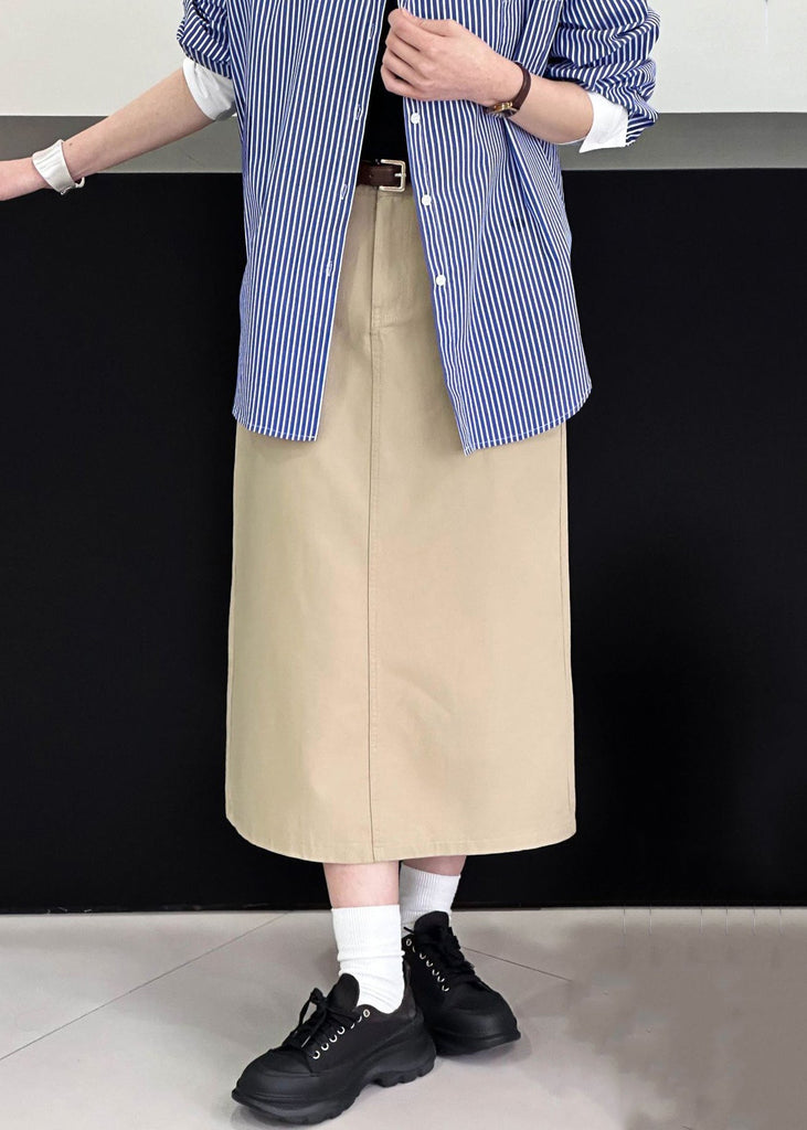 Jupe kaki en coton uni, taille haute, ouverture latérale AF1068