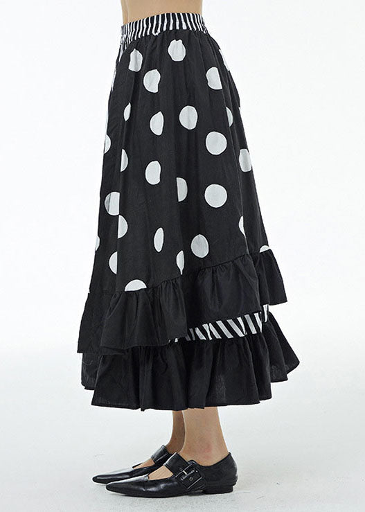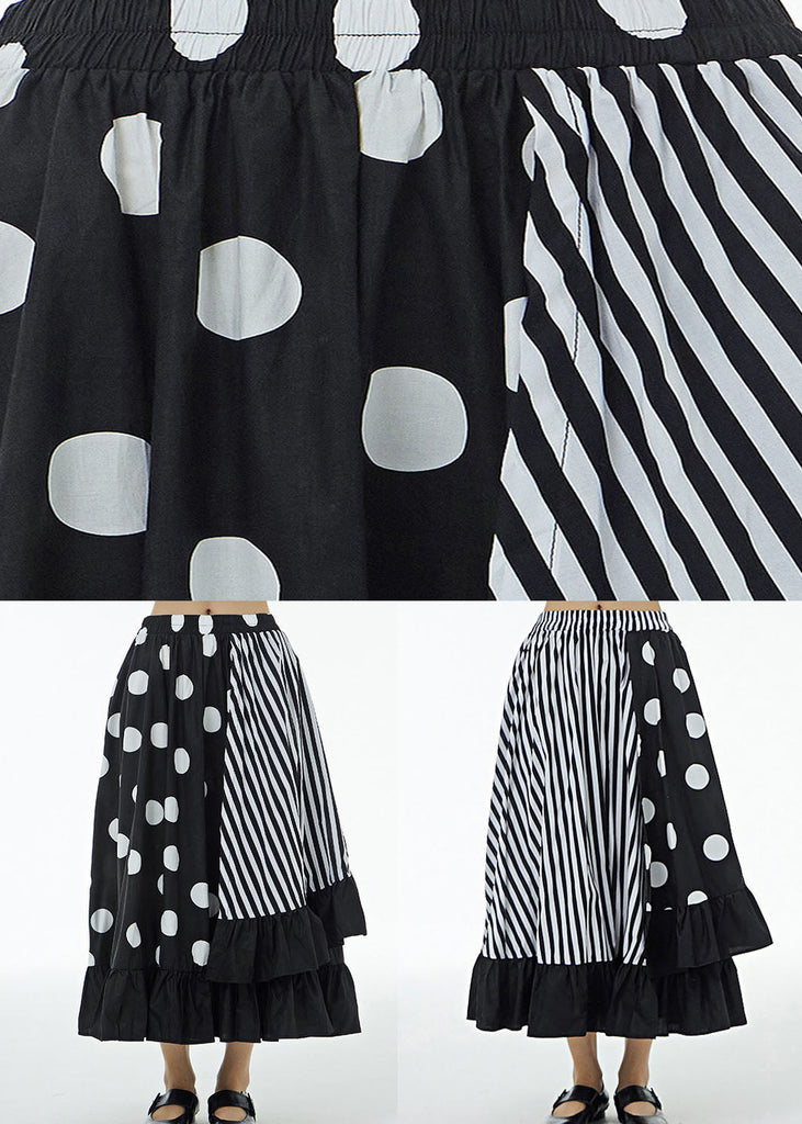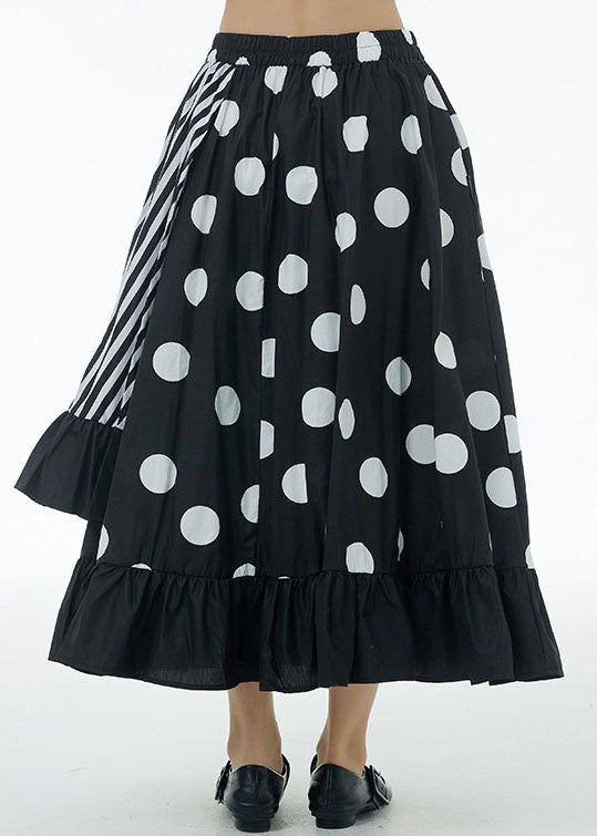 Jupes d'été en coton à pois, volants et patchwork, taille élastique, amples et à taille élastique