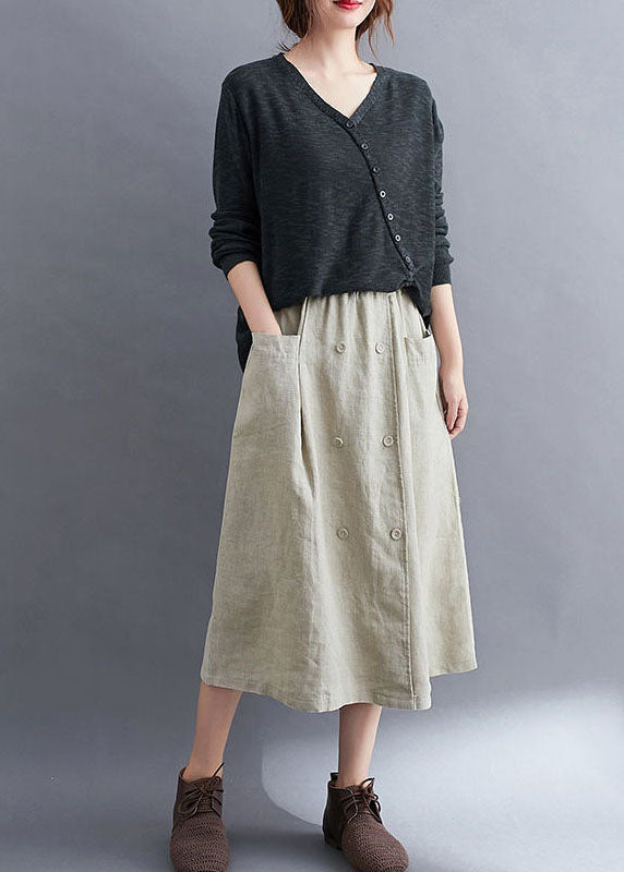 Jupes d'été en lin patchwork abricot naturel à poches froissées