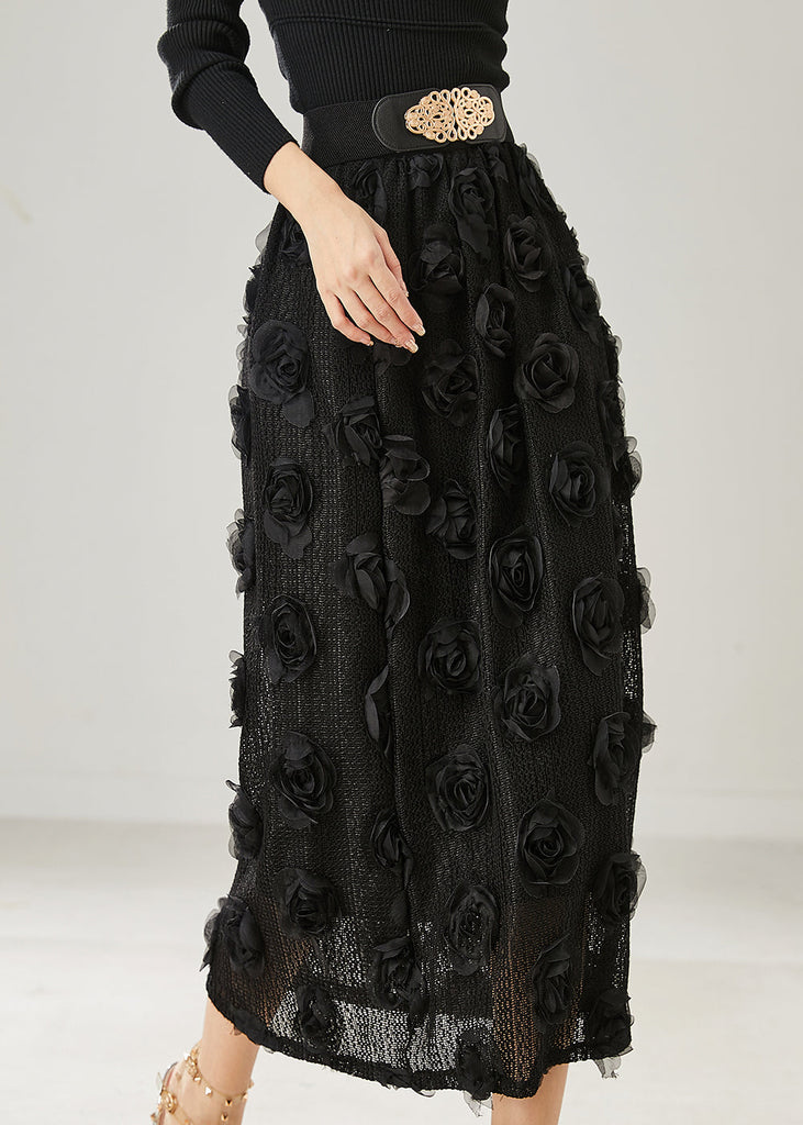 Jupes d'été en maille florale stéréoscopique noire naturelle AZ1047