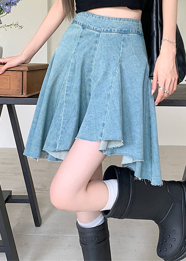 Jupe en jean bleu uni taille haute, modèle original QF057