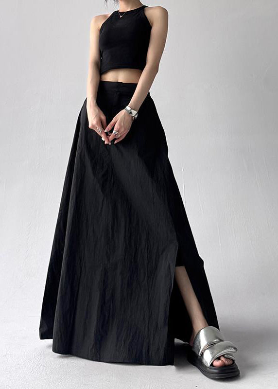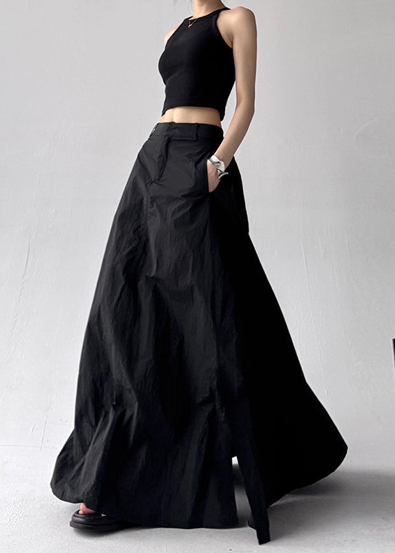 Jupe trapèze grise bohème extra large ourlet ouvert sur le côté été