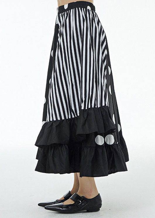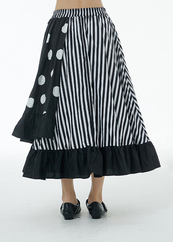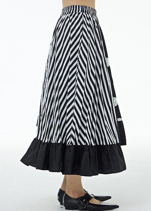 Jupe en coton patchwork rayée, taille élastique à volants, été LY1228