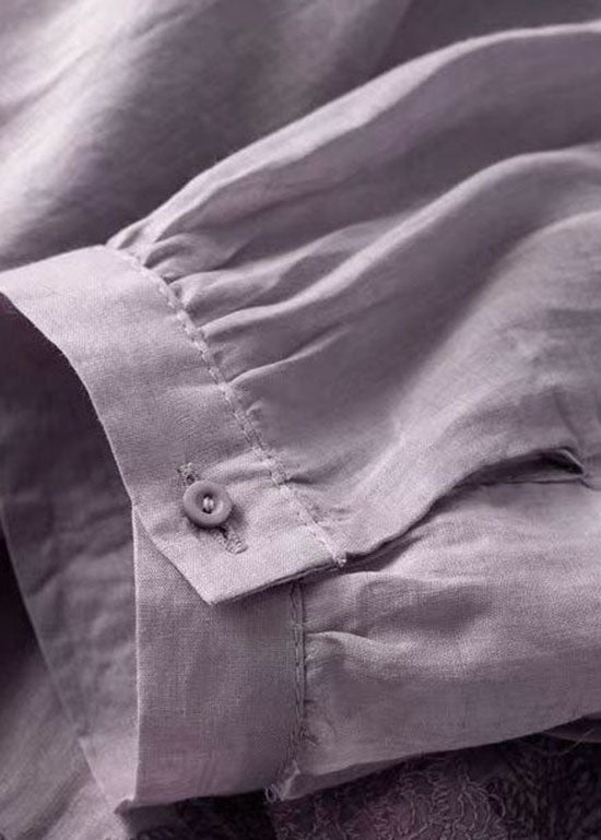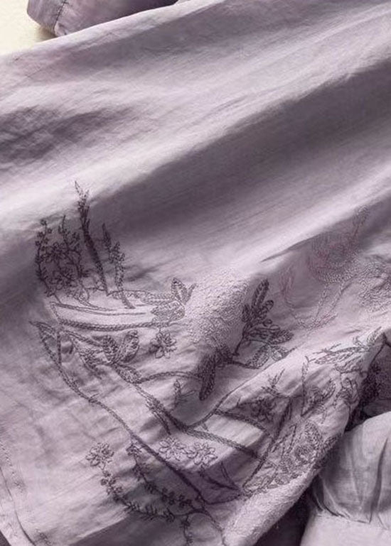 The Magnifique T-shirt d'été en lin patchwork brodé violet LY0616 destined to impress, and priced at only $43.00, for a limited time.