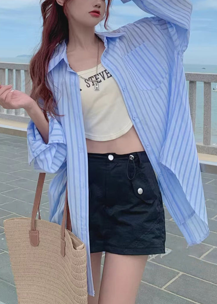 Découvrez le style intemporel de nos chemises en coton à rayures bleues, dotées d'un col Peter Pan classique, parfait pour la saison d'automne.