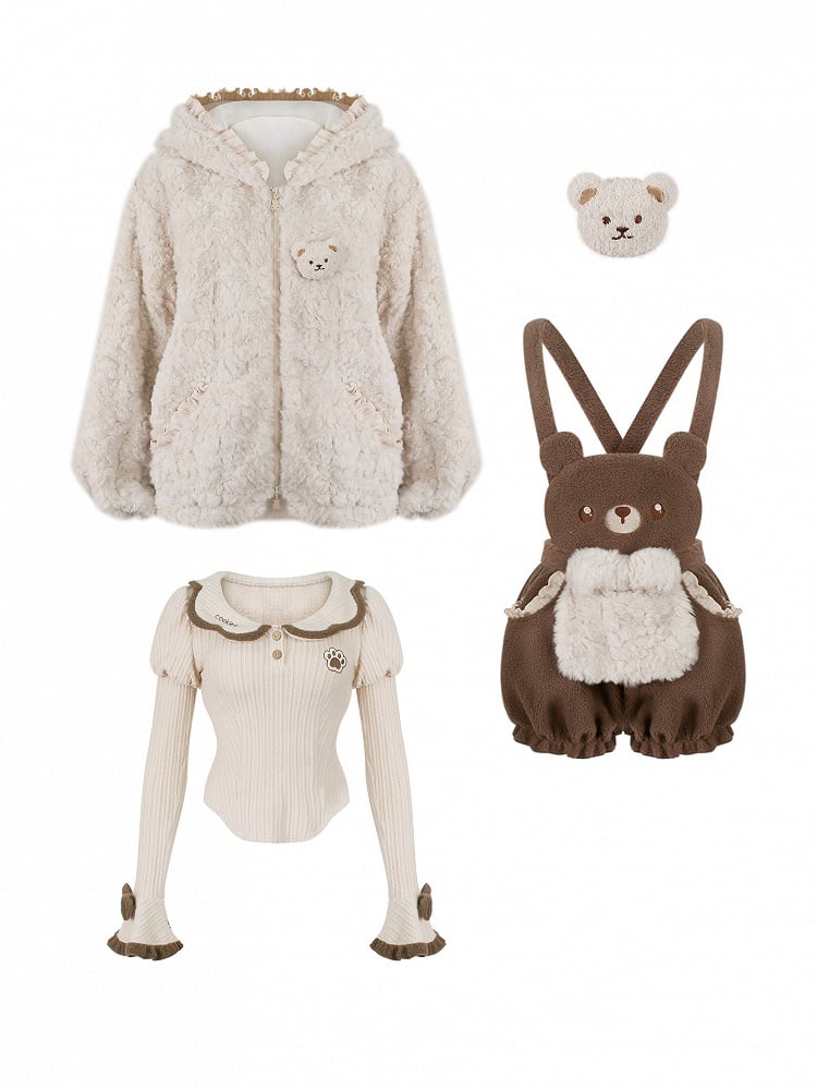 Bow Details with Brown Top Long Light Knit Juliette Bear Pattern Sleeves and Paw Adorable FashionChic