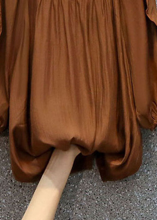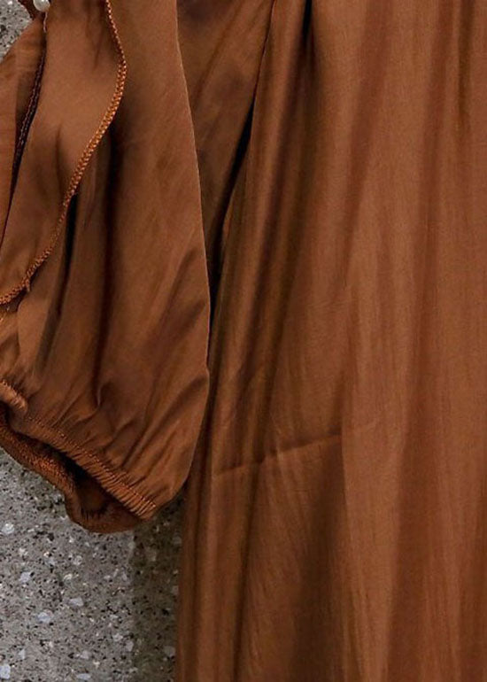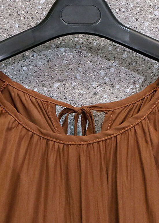 Top en mousseline patchwork couleur café, col rond à volants, été LY0381