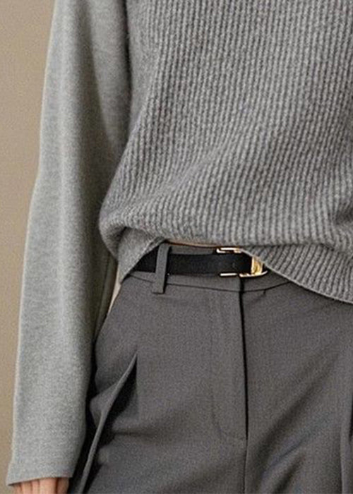 Simple Grey O Neck Patchwork Knit Top Winter RK025 ABC