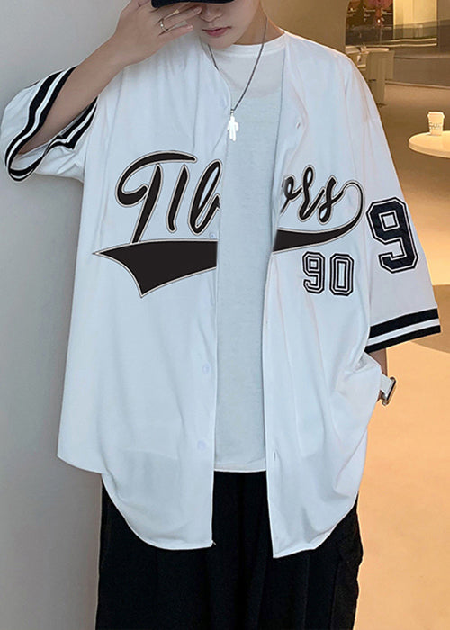 Casual Cotton Shirts Half Sleeve Mens Button Print Grey FashionChic
