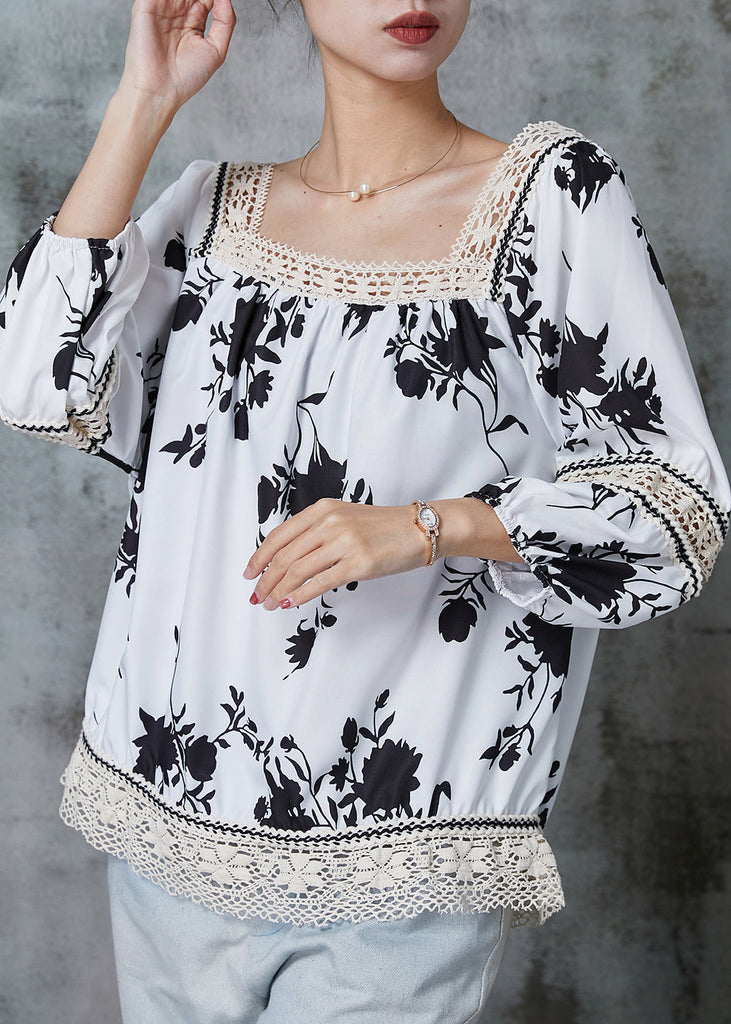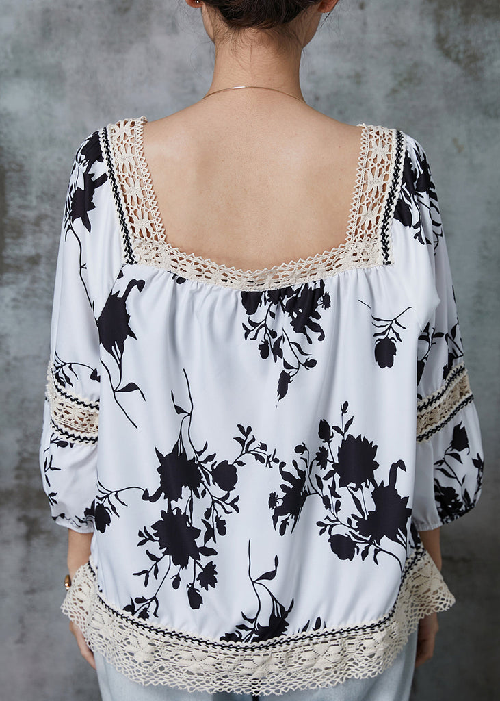 Elegant White Print Patchwork Lace Shirts Summer AL1017 Genistyle Shop