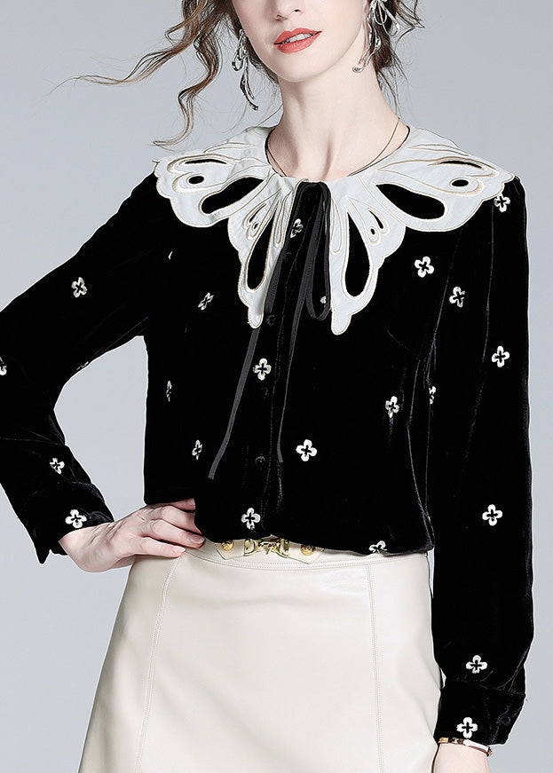 Chemises en velours de soie avec cravate noire brodée, style français AC3018
