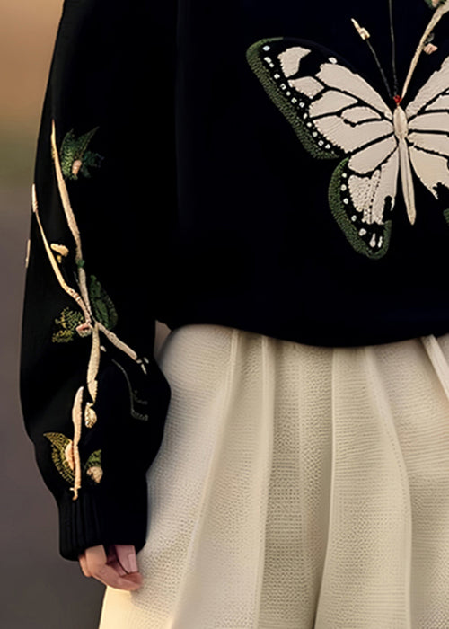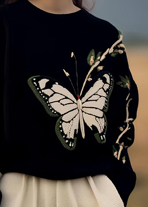 Pull en maille douce imprimée noire française, idéal pour l'hiver WX026