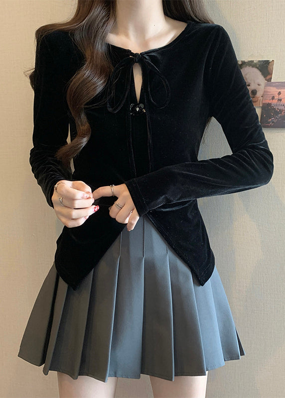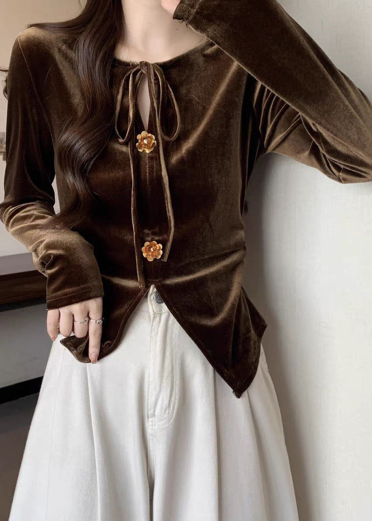 Chemises d'hiver en velours de soie marron français à lacets sur le devant WK032