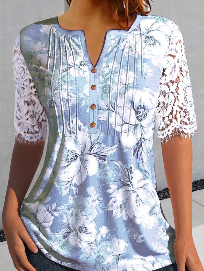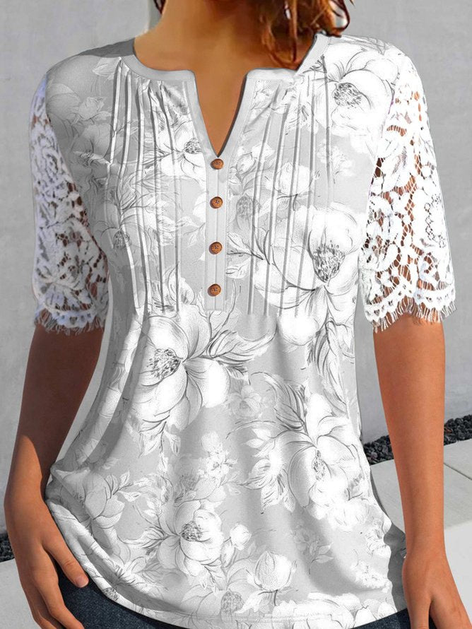 Titre du produit : Chemise décontractée en jersey à fleurs
