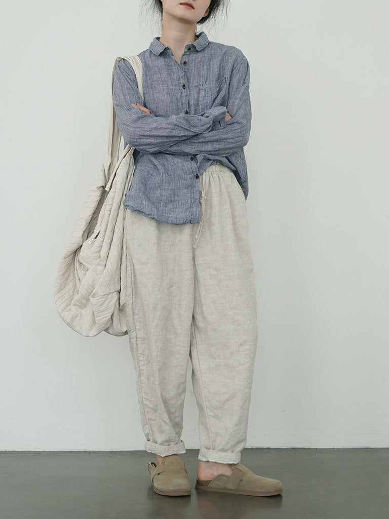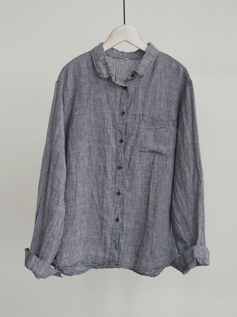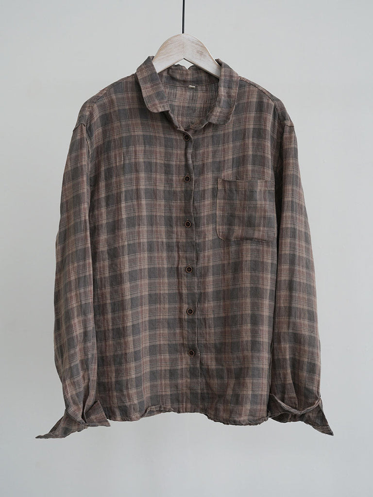 Chemise en lin à carreaux ethniques d'automne pour femme AV1061