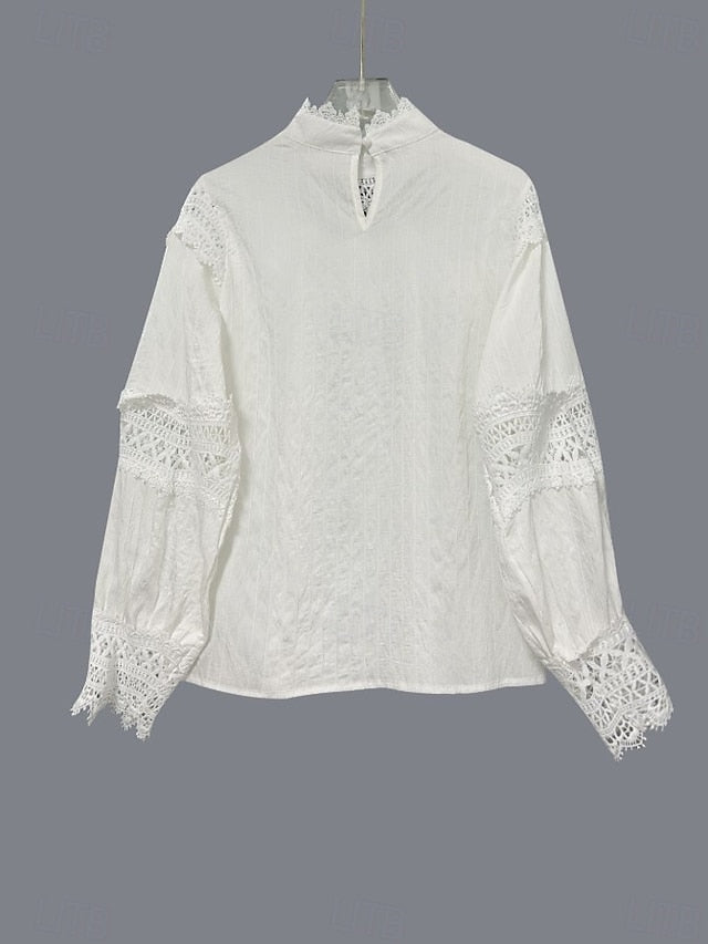 Fabric: Polyester, Gender: Women's, Tops Type: Boho Shirt, Lace Shirt, Design: Lace, Occasion: Work, Daily, Holiday, Style: Stylish, Basic, Fit Type: Regular Fit, Neckline: High Neck, Sleeve Length: Long Sleeve, Elasticity: Inelastic, Look After Me: Machine wash, Top Length: Regular Tops, Season: Summer, Spring,