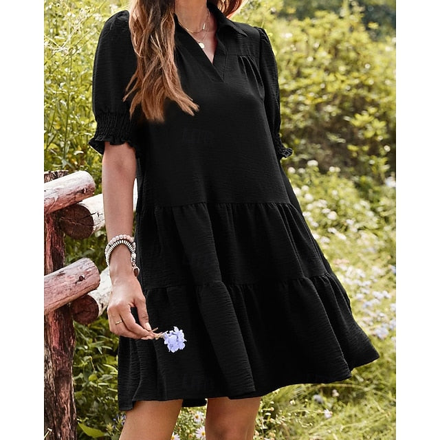 Dresses Type: Shirt Dress, Fabric: Polyester, Gender: Women's, Design: Ruched, Occasion: Weekend, Outdoor, Vacation, Going out, Style: Fashion, Modern, Fit Type: Loose Fit, Dress Length Type: Mini Dress, Neckline: Shirt Collar, Sleeve Length: Short Sleeve, Elasticity: Stretchy, Look After Me: Hand wash, Machine wash, Pattern: Plain, Season: Summer, Spring,