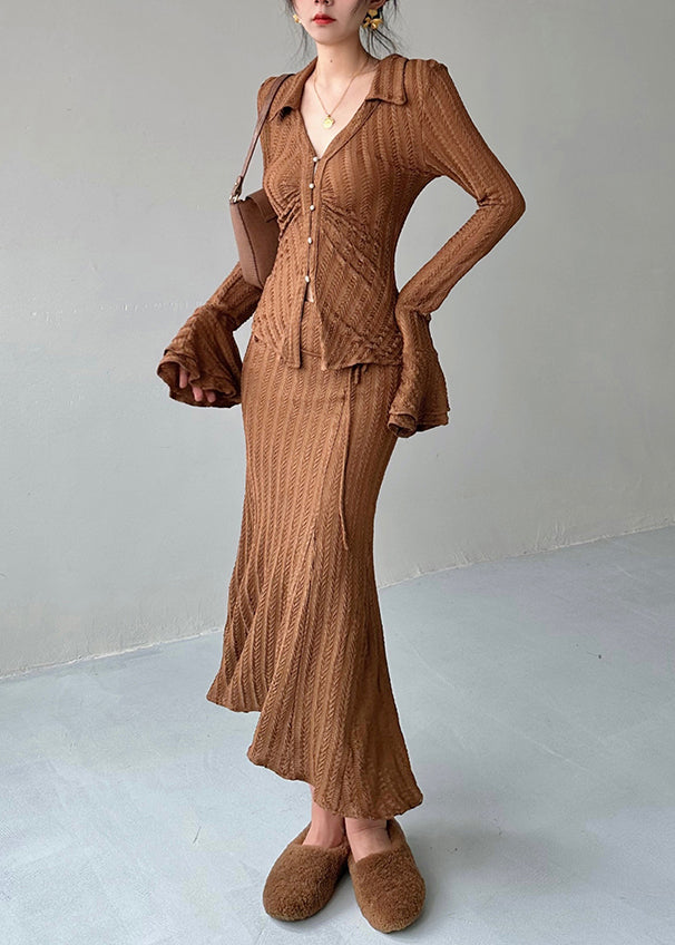 Laissez-vous séduire par le style luxueux de notre ensemble deux pièces bleu en maille à manches évasées, au design original. Confectionné avec un souci du détail et une finesse uniques, cet ensemble allie à la perfection élégance et confort. Affirmez votre style avec les manches évasées et créez un look qui ne passe pas inaperçu.