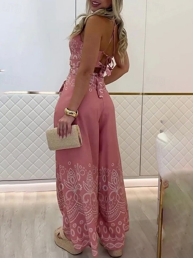 Women's Active Boho Blouse Pants Sets Sleeveless Halter