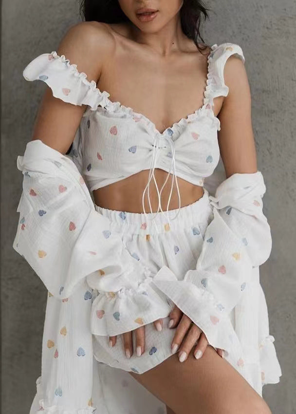 Ensemble de pyjama 3 pièces en coton imprimé cœur multicolore, coupe oversize, été