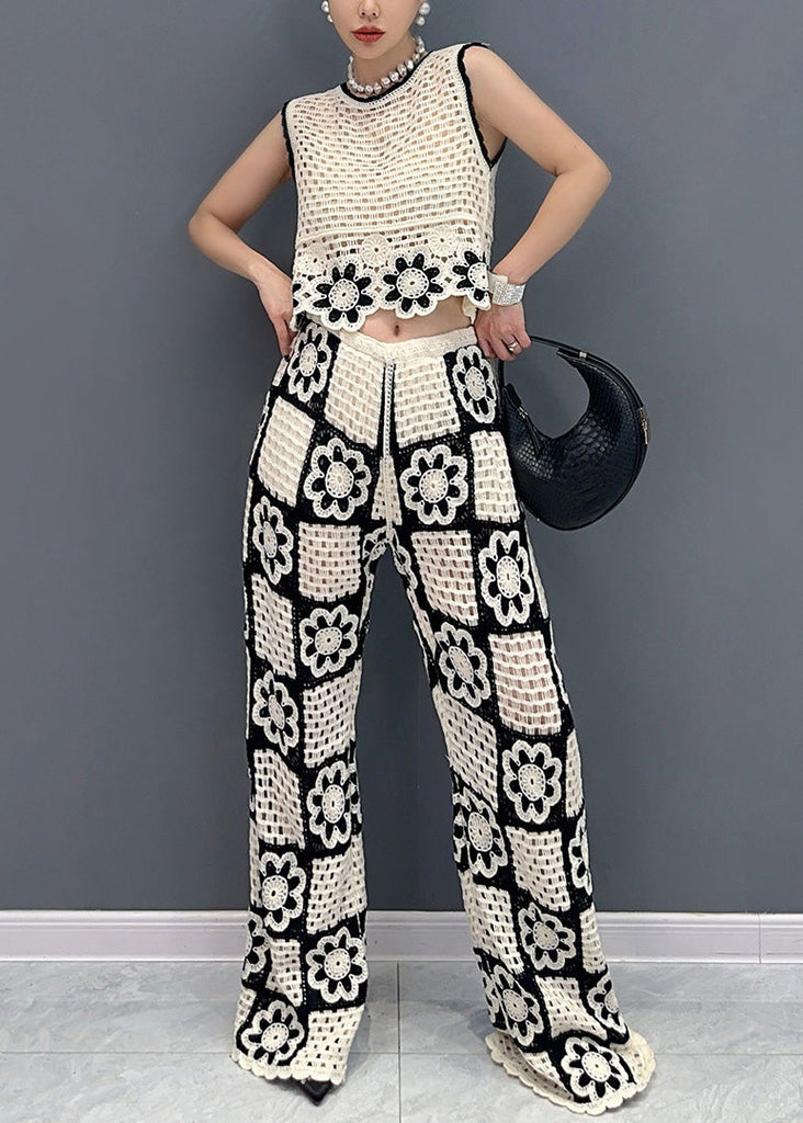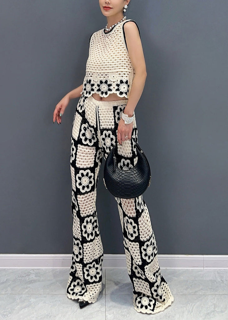 Beautiful White O Neck Hollow Out Floral Cotton Two-Piece Set Sleeveless AO1017 JDML-TPIEC240909